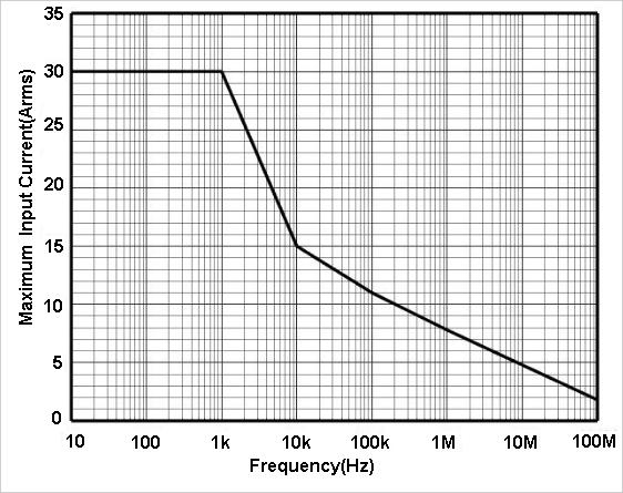 图 2.c HCP8030D 最大测量电流 VS 频率曲线
