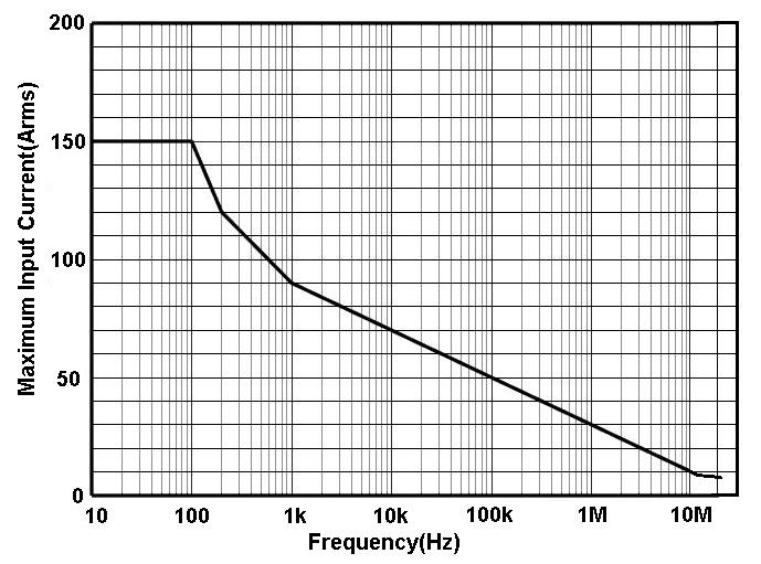 图 11.b HCP8150A 最大测量电流 VS 频率曲线