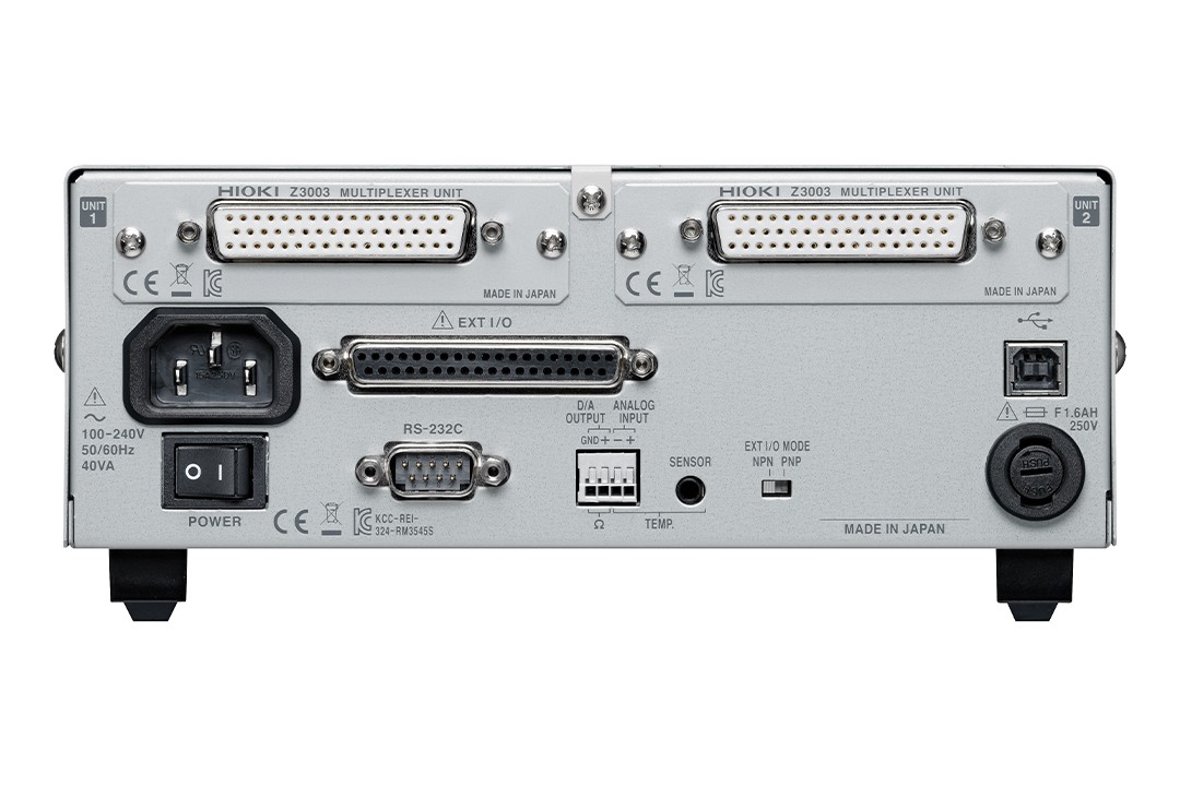 ● 使用多路转接器单元Z3003(选件)可进行多点测量(4端子20ch)和可综合判断的多路转接器功能(仅限RM3545-02)