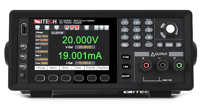 IT-N6900系列直流电源有60V和150V,850W及1500W的输出。全系列采用黑色面板和高清屏操控,低纹波、低噪声,可提供稳定纯净的直流电能,两段电流量程,高达1 μA的电流分辨率,具有CC、CV优先权设置,新增Foldback保护,轻松适配DC-DC、半导体激光器、汽车电子、通信电子、电机、光伏组件等各类待测物。IT-N6900系列支持SCPI和LabVIEW驱动,内置USB/LAN/数字IO通讯接口,选配GPIB/RS232和模拟量接口,适合远程控制及系统集成,可应用于研发、产线、学校等各种场合。