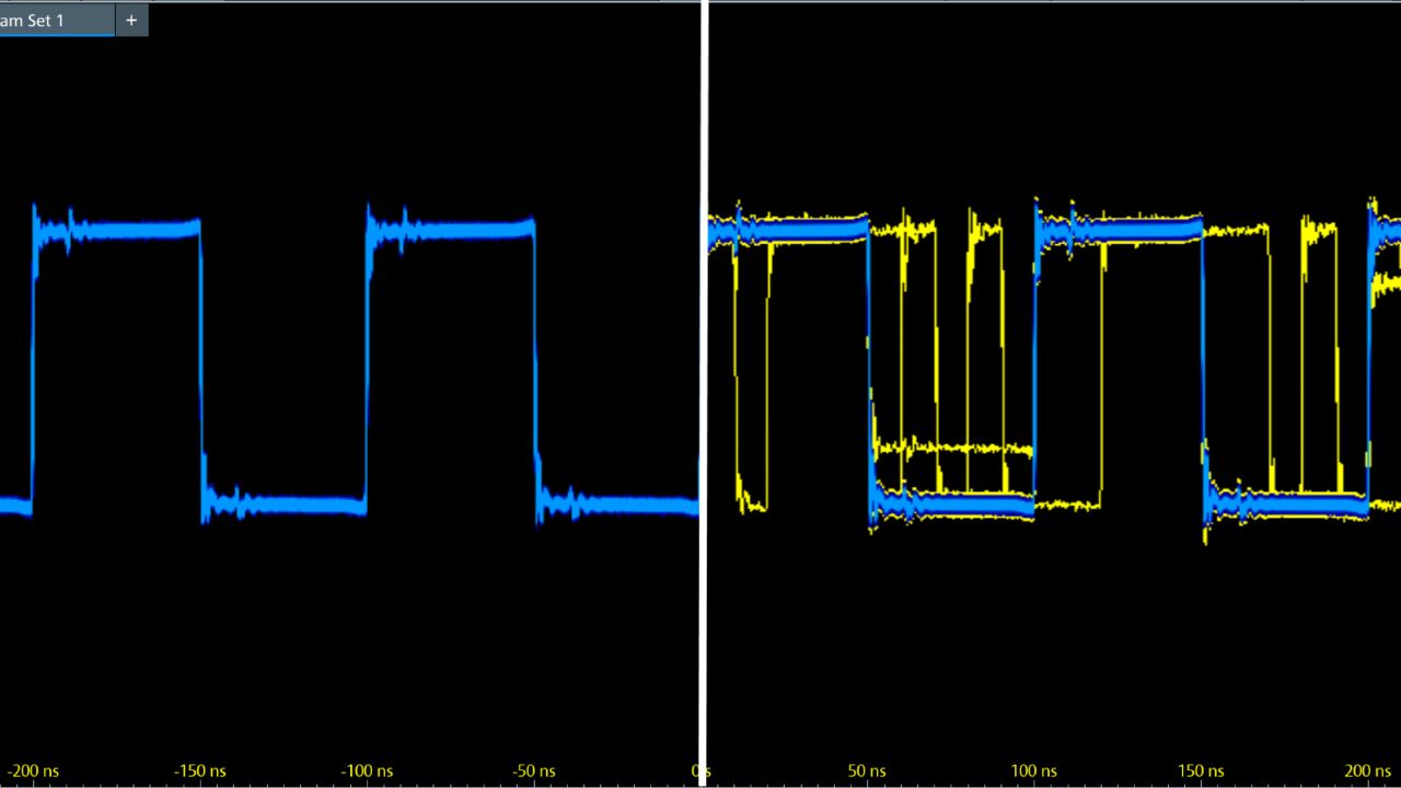 一般波形捕获率(左)与 450 万波形/秒(右)