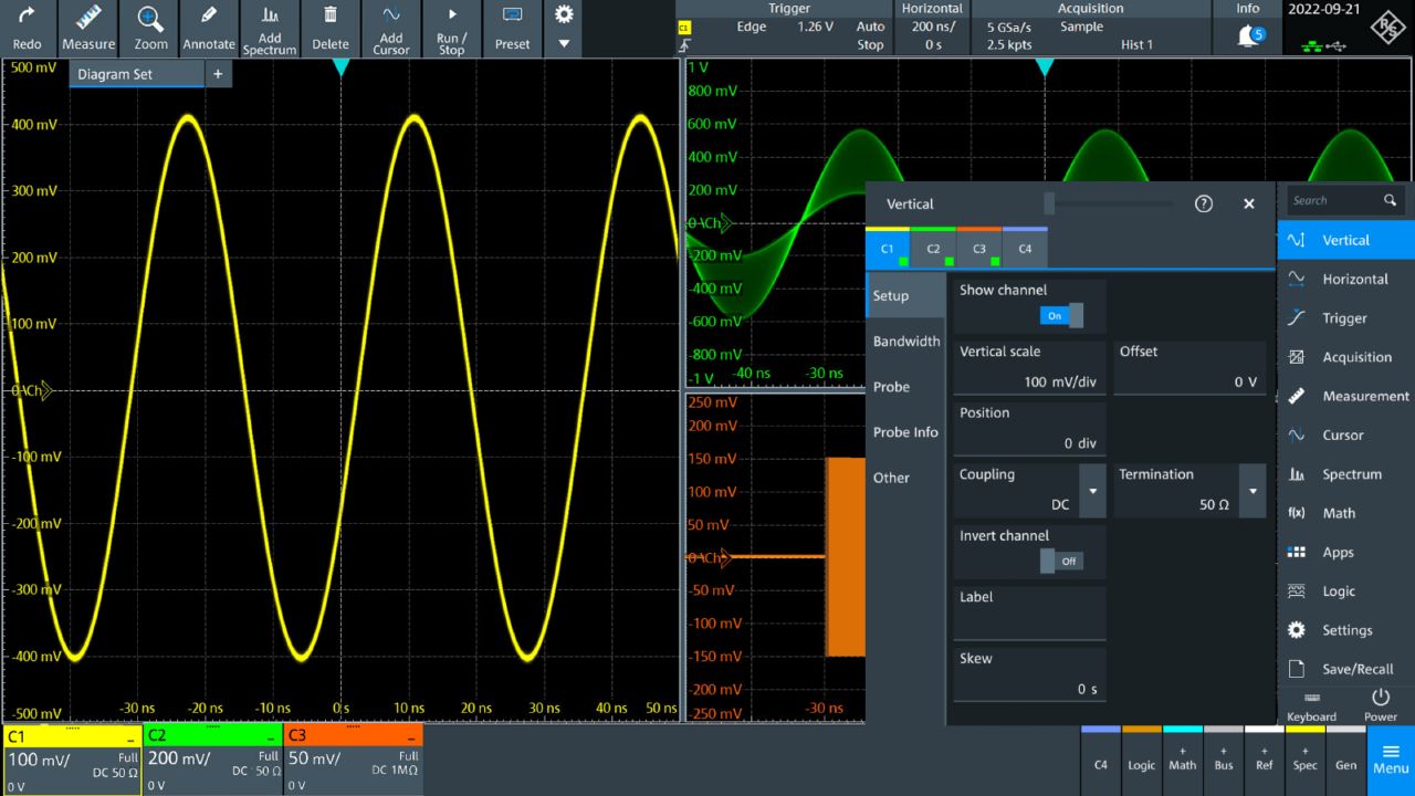 l R&S®SmartGrid 可用于通过拖放设置波形布局