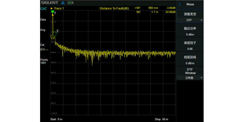 支持故障点距离(DTF)、时域反射计(TDR) 、1端口电缆损耗、2端口插入损耗、回波损耗及VSWR测量功能。